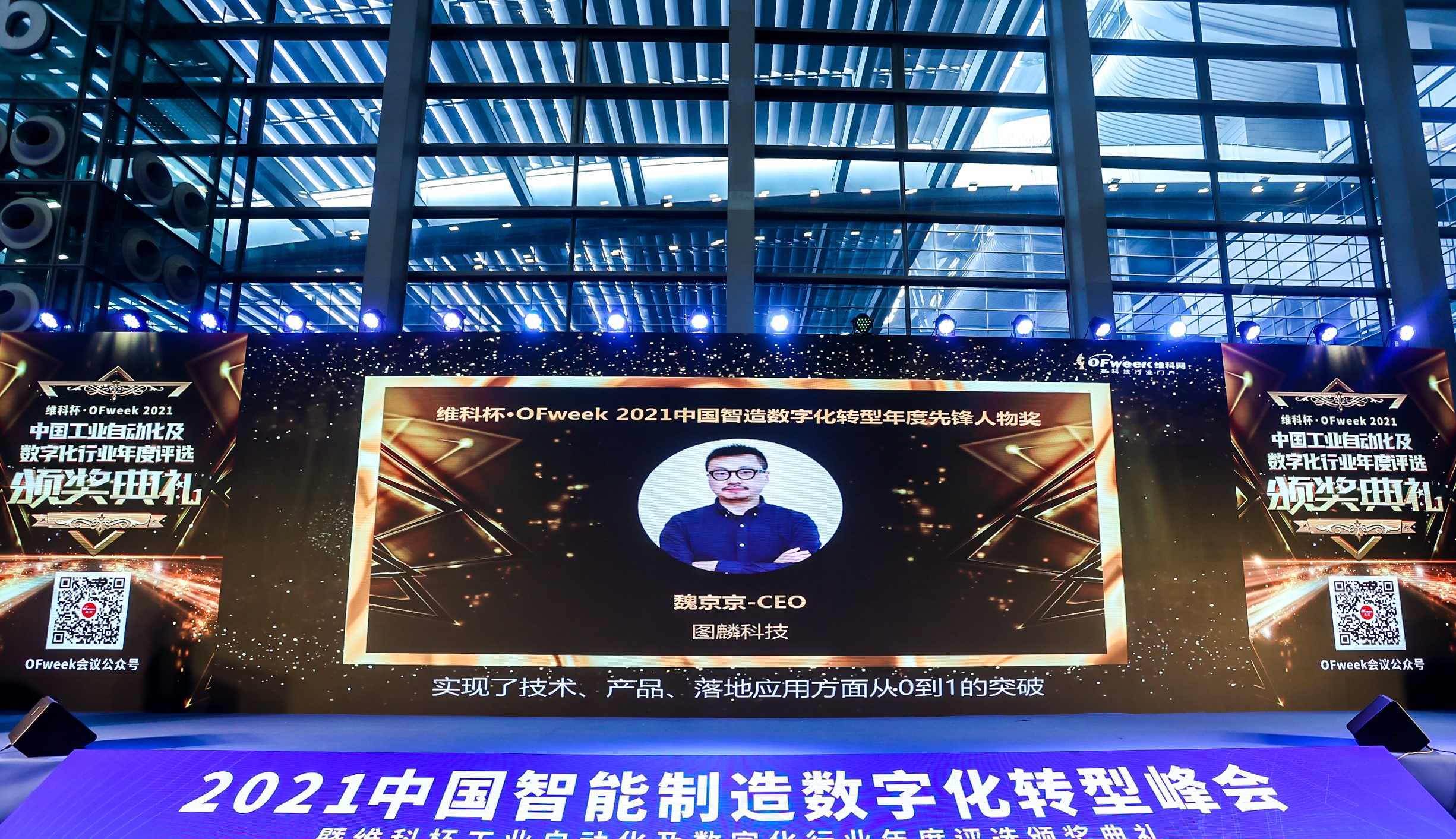9月28日,lewin乐玩科技CEO魏京京在由中国高科技行业门户OFweek维科网主办的“2021中国智能制造数字化转型峰会暨维科杯工业自动化及数字化行业年度评选颁奖典礼”上,获颁“2021中国智造数字化转型年度先锋人物奖”;同一天,lewin乐玩科技屏幕贴合后检测解决方案在同样是由OFweek维科网主办的 “OFweek2021第六届人工智能产业大会”上,入选“2021人工智能行业最佳赋能AI解决方案奖”。